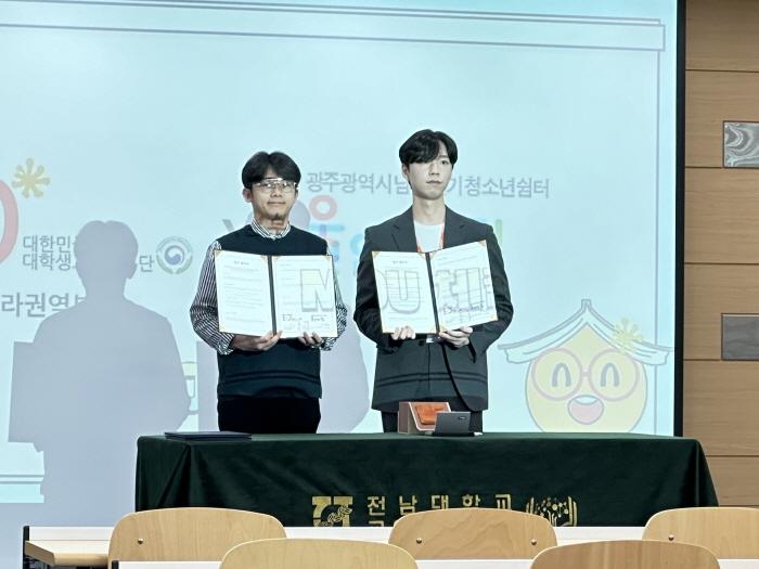 [ÄÚ¸®¾Æ¹®È½ºÆ÷Ã÷Àú³Î] ±¤ÁÖ±¤¿ª½Ã³²Àڴܱâû¼Ò³â½°ÅͰ¡ Áö³ 23ÀÏ Àü³²´ëÇб³ ±³À°À¶ÇÕ°ü »ç¸²È¦¿¡¼ ÁøÇàÇÑ ´ëÇѹα¹´ëÇлý±³À°±âºÎ´Ü ±¤ÁÖ¡¤Àü¶ó±Ç¿ª º»ºÎ(ÀÌÇÏ ¡®´ë±³´Ü¡¯) ¹ß´ë½Ä¿¡¼ Àü³²´ëÇб³ ±³À°¹®Á¦¿¬±¸¼Ò(¼ÒÀå ·ùÁöÇå ±³¼ö), ´ë±³´Ü(±¤ÁÖ¡¤Àü¶ó±Ç¿ª º»ºÎÀå Á¤¼±ÁÖ)°ú û¼Ò³â ±³À° Áö¿ø ¹× ±³À° °øµ¿Ã¼ Ȱ¼ºÈ¸¦ À§ÇÑ ¾÷¹«Çù¾àÀ» ü°áÇÏ¿´´Ù°í ¹àÇû´Ù.