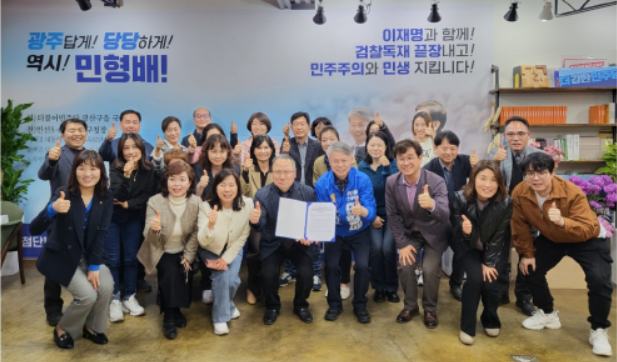 [ÄÚ¸®¾Æ¹®È½ºÆ÷Ã÷Àú³Î] ´ëÇÑÁÖÅðü¸®»çÇùȸ ±¤ÁÖ½Ãȸ°¡ 1 ÀÏ ´õºÒ¾î¹ÎÁÖ´ç ±¤ÁÖ ±¤»êÀ» ¹ÎÇü¹è Èĺ¸ ÁöÁö¸¦ °ø½Ä ¼±¾ðÇß´Ù . ÁöÁö¼±¾ð¿¡´Â ¼±Ý¼® ´ëÇÑÁÖÅðü¸®»çÇùȸ ±¤ÁÖ½ÃȸÀå°ú ȸ¿ø µî °ü°èÀÚ 40 ¿©¸íÀÌ Âü¼®Çß´Ù .