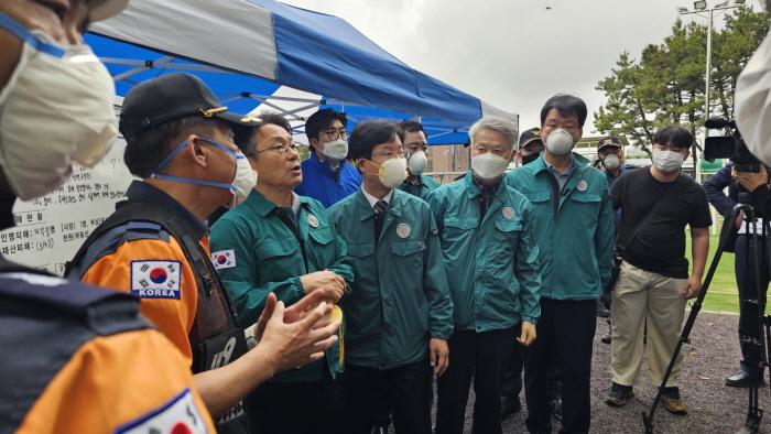 [ÄÚ¸®¾Æ¹®È½ºÆ÷Ã÷Àú³Î] °±âÁ¤ ±¤ÁÖ±¤¿ª½ÃÀåÀÌ 17ÀÏ ±¤»ê±¸ ¼ÒÃ̵¿ ±ÝȣŸÀÌ¾î ±¤ÁÖ°øÀå ÈÀçÇöÀåÀ» ã¾Æ ÈÀçÁø¾Ð °ú ÇÇÇØ»óȲ µîÀ» Á¡°ËÇϰí ÀÖ´Ù.
