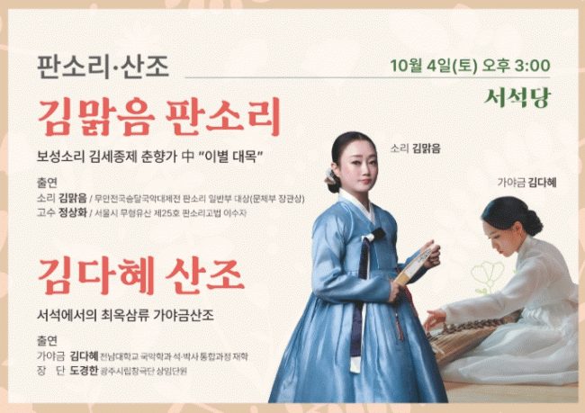 ±¤ÁÖ¹®ÈÀç´Ü ÀüÅ빮ȰüÀº ¿À´Â 10¿ù 4ÀÏ ¿ÀÈÄ 3½Ã, Á¦21ȸÂ÷ Åä¿ä»ó¼³°ø¿¬À» ¼±º¸ÀδÙ.