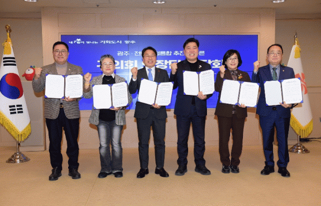 ±¤ÁÖ±¤¿ª½Ã¿Í 5°³ ÀÚÄ¡±¸ÀÇȸ°¡ (°¡Äª)±¤ÁÖÀü³²Æ¯º°½ÃÀÇ ¼º°øÀû ¾ÈÂøÀ» À§ÇÑ ¡®´ëÅëÇÕ °øµ¿ ¼±¾ð¡¯À» ¹ßÇ¥Çß´Ù.