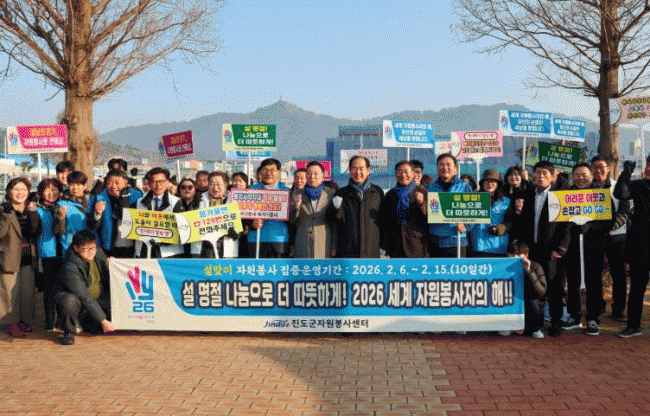 Áøµµ±ºÀº ¼³ ¸íÀýÀ» ¸Â¾Æ Áö¿ª»çȸ¿¡ µû¶æÇÑ ³ª´® ¹®È¸¦ È®»êÇϰí ÀÚ¿øºÀ»çÀÇ °¡Ä¡¸¦ µÇ»õ±â±â À§ÇØ ÀÚ¿øºÀ»ç´Üü ȸ¿ø µî ¾à 60¸í°ú ÇÔ²² ¡®¼³ ¸íÀý ³ª´®À¸·Î ´õ µû¶æÇϰÔ! 2026 ¼¼°è ÀÚ¿øºÀ»çÀÚÀÇ ÇØ¡¯ ¿îµ¿(Ä·ÆäÀÎ)À» ÁøÇàÇß´Ù.