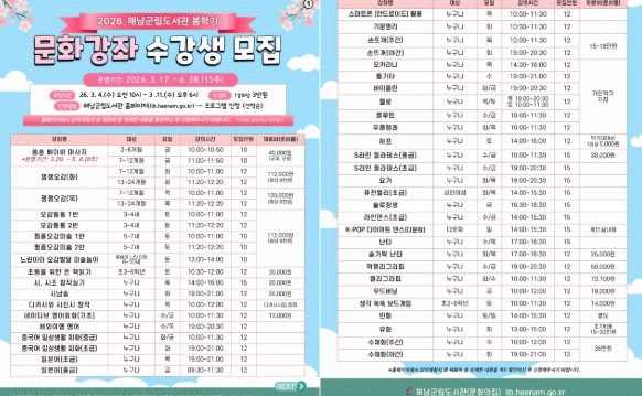 ±³À° ¹× ÇнÀ 15°³ °ÁÂ¿Í Ãë¹Ì¡¤¿À¶ô 23°³ °Á·Π´Ùä·Ó°Ô ±¸¼ºÇØ, ÃÑ ¸ðÁý Á¤¿ø¸¸µµ 606¸íÀ¸·Î, ´õ¿í ¸¹Àº ±º¹Îµé¿¡°Ô Âü¿©ÀÇ ±âȸ¸¦ Á¦°øÇÒ ¿¹Á¤ÀÌ´Ù. »ýÈÄ 2~6°³¿ù ¿µ¾Æ¿Í ºÎ¸ð°¡ ÇÔ²²ÇÏ´Â º£À̺ñ¸¶»çÁö °Á¿¡¼ºÎÅÍ À¯¾Æ, Ãʵî»ý °Á¸¦ ºñ·ÔÇØ ´©±¸³ª Âü¿©ÇÒ ¼ö ÀÖ´Â ¿Ü±¹¾î, À½¾Ç, ¹Ì¼ú, ½ºÆ÷Ã÷ µîÀÌ ¸¶·ÃµÇ¾î ÀÖ´Ù.