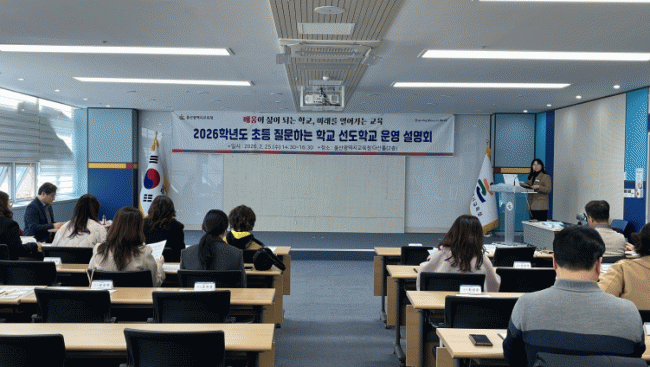 ¿ï»ê±³À°Ã»Àº 25ÀÏ ´Ù»êȦ¿¡¼ ¼±µµÇб³ °ü¸®ÀÚ¿Í ´ã´ç ±³¿øÀ» ´ë»óÀ¸·Î ¿î¿µ ¼³¸íȸ¸¦ ¿°í, ¼¼ºÎ ½Çõ Àü·«°ú Çб³ °£ Çù·Â ¹æ¾ÈÀ» ³íÀÇÇß´Ù.