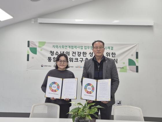 ´ã¾ç±ºÃ»¼Ò³â»ó´ãº¹Áö¼¾ÅÍ »çÁø Á¦°ø- ´ã¾ç±ºÃ»¼Ò³â»ó´ãº¹Áö¼¾ÅÍ ¼ÕÀº¾Æ ¼¾ÅÍÀå(ÁÂ)°ú ´ã¾ç±ºÁö¼Ó°¡´É¹ßÀüÇùÀÇȸ À̵¿¿À ÀÇÀåÀÌ Áö¿ª»çȸ Áö¼Ó°¡´É¹ßÀü°ú û¼Ò³âÀÇ °Ç°ÇÑ ¼ºÀå ¹× »çȸÂü¿© ¿ª·® °È¸¦ À§ÇØ ¾÷¹«Çù¾à(MOU)À» ü°áÇϰí ÀÖ´Ù.
