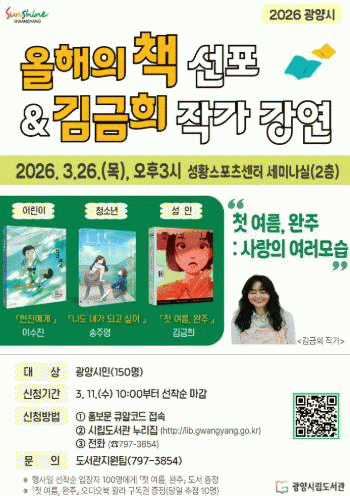 ±¤¾ç½Ã´Â ¿À´Â 3¿ù 26ÀÏ ¿ÀÈÄ 3½Ã ¼ºÈ²½ºÆ÷Ã÷¼¾ÅÍ ¼¼¹Ì³ª½Ç(2Ãþ)¿¡¼ ¡®2026 ±¤¾ç½Ã ¿ÃÇØÀÇ Ã¥ ¼±Æ÷½Ä ¹× ÀÛ°¡ ÃÊû °¿¬¡¯À» °³ÃÖÇÑ´Ù.