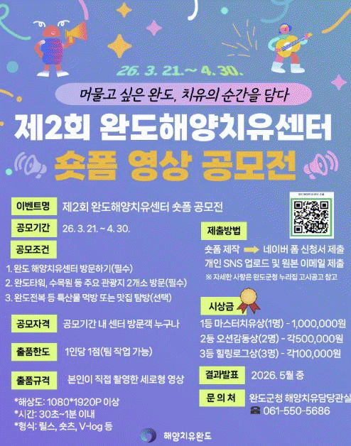 °ø¸ðÀü ±â°£Àº 3¿ù 21ÀϺÎÅÍ 4¿ù 30ÀϱîÁöÀ̸ç, ¿ÏµµÇؾçÄ¡À¯¼¾Å͸¦ ¹æ¹®ÇÏ¿© ÇØ¾çÄ¡À¯ ÇÁ·Î±×·¥À» üÇèÇÑ Ä¡À¯°´À̶ó¸é ´©±¸³ª Âü¿© °¡´ÉÇÏ´Ù.
