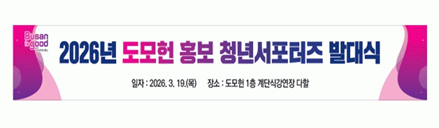 ºÎ»ê½Ã´Â ¿À´Ã(19ÀÏ) ¿ÀÈÄ 3½Ã µµ¸ðÇå¿¡¼ '2026³â µµ¸ðÇå È«º¸ û³â¼Æ÷ÅÍÁî'ÀÇ ¹ß´ë½ÄÀ» °³ÃÖÇϰí, º»°ÝÀûÀΠȰµ¿À» ½ÃÀÛÇÑ´Ù°í ¹àÇû´Ù.
