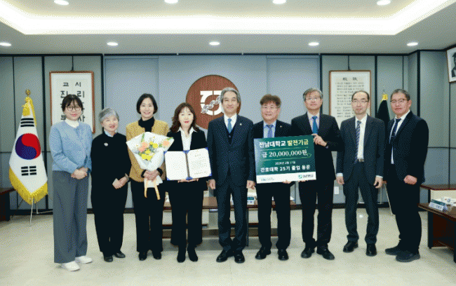 Àü³²´ëÇб³ °£È£´ëÇÐ Á¹¾÷ 25ÁÖ³âÀ» ¸ÂÀº µ¿¹®µéÀÌ È¨Ä¿¹Öµ¥À̸¦ °è±â·Î ´Ù½Ã ¸ð¿© ¹Ì·¡°£È£±³À°°ü °Ç¸³°ú ÈÄÇÐ ¾ç¼ºÀ» À§ÇÑ ¹ßÀü±â±Ý 2õ¸¸ ¿øÀ» ±âºÎÇß´Ù.