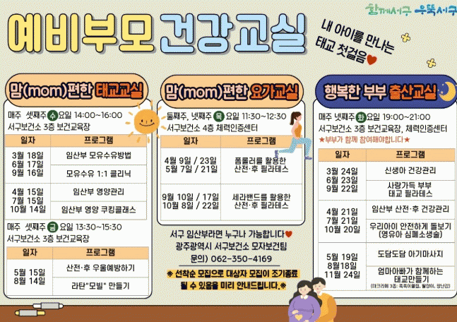 ±¤ÁÖ±¤¿ª½Ã ¼±¸´Â °Ç°ÇÑ Ãâ»ê°ú ¿Ã¹Ù¸¥ À°¾Æ Áö¿øÀ» À§ÇØ ¡®¿¹ºñºÎ¸ð °Ç°±³½Ç¡¯À» º»°Ý ¿î¿µÇÑ´Ù.