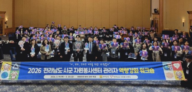 Àü¶ó³²µµ´Â ÀÚ¿øºÀ»ç¼¾ÅÍ °ü¸®ÀÚÀÇ Àü¹®¼º Çâ»ó°ú µµ¡¤½Ã±º °£ Çù·Â °È¸¦ À§ÇØ 2026³â ¡®µµ¡¤½Ã±º ÀÚ¿øºÀ»ç¼¾ÅÍ °ü¸®ÀÚ ¿ª·®°È ¿öÅ©¼ó¡¯À» 20ÀϱîÁö ÀÌÆ²°£ ¿µ¾Ï È£ÅÚÇö´ë ¹ÙÀÌ ¶óÇÑ¿¡¼ °³ÃÖÇß´Ù°í ¹àÇû´Ù.