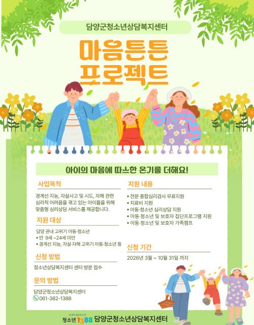 [ÄÚ¸®¾Æ¹®È½ºÆ÷Ã÷Àú³Î] ´ã¾ç±ºÃ»¼Ò³â»ó´ãº¹Áö¼¾ÅÍ(¼¾ÅÍÀå ¼ÕÀº¾Æ)´Â Á¤¼Àû À§±â¸¦ °Þ´Â Áö¿ª ³» ¾Æµ¿‧û¼Ò³âÀÇ ½É¸®Àû ȸº¹°ú °Ç°ÇÑ ¼ºÀåÀ» Áö¿øÇϱâ À§ÇØ ¡®2026³â °íÀ§±â ¾Æµ¿‧û¼Ò³â ¸¶À½µ¹º½»ç¾÷ ¡¸¸¶À½Æ°Æ° ÇÁ·ÎÁ§Æ®¡¹¡¯¸¦ ÃßÁøÇÑ´Ù°í ¹àÇû´Ù.