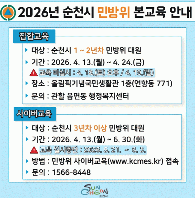 ¼øÃµ½Ã, 2026³â ¹Î¹æÀ§ º»±³À° ½Ç½Ã