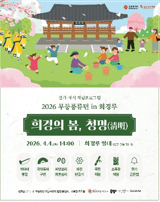±¤ÁÖ¹®ÈÀç´ÜÀº ¿À´Â 4¿ù 4ÀÏ ¿ÀÈÄ 2½ÃºÎÅÍ 5½Ã±îÁö Èñ°æ·ç ÀÏ´ë¿¡¼ Àý±â¡¤¼¼½Ã üÇèÇÁ·Î±×·¥ '2026³â ¹«µîdz·ùµ¯ in Èñ°æ·ç-2ȸÂ÷ ¡®Èñ°æÀÇ º½, û¸í(ôèÙ¥)¡¯'À» °³ÃÖÇÑ´Ù. À̹ø Çà»ç´Â º½ÀÇ Àý±â ¡®Ã»¸í¡¯À» ¸Â¾Æ ¾ÆÀÌ¿Í º¸È£ÀÚ°¡ ÇÔ²² ÀüÅ빮ȸ¦ üÇèÇÒ ¼ö ÀÖµµ·Ï ¸¶·ÃµÆ´Ù.