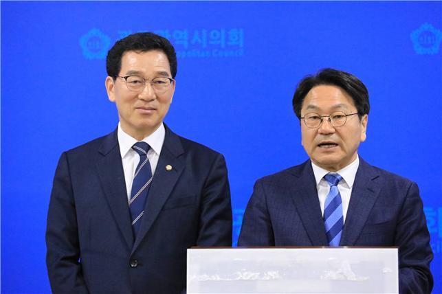 ½Å È帴 °±âÁ¤ ±¤ÁÖ½ÃÀå°úÀÇ Çù·Â ÀÇÁöµµ °Á¶Çß´Ù . ±×´Â ¡°6 ÀÚ ÇùÀÇ °úÁ¤¿¡¼ ¾à¼ÓµÈ »çÇ×Àº Â÷Áú ¾øÀÌ ÀÌÇàÇÏ°í ±âÁ¸ ±¤ÁÖ½ÃÀÇ °èȹµµ °è½Â ¡¤ ¹ßÀü½ÃÄÑ ´õ ¿Ï¼ºµµ ³ôÀº ¹Ì·¡ ºñÀüÀ¸·Î À̾°Ú´Ù ¡± °í ¹àÇû´Ù . ¶Ç À̹ø ´ÜÀÏÈ¿¡ ´ëÇØ ¡° Àü³²°ú ±¤ÁÖÀÇ ÈûÀ» Çϳª·Î ¸ð¾Æ ´õ Å« µµ¾àÀ» ÀÌ·ç±â À§ÇÑ °øµ¿ÀÇ °á´Ü ¡± À̶ó°í Æò°¡Çß´Ù .