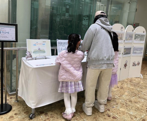 ¼ÛÁ¤´Ù°¡Ä¡¹®Èµµ¼°üÀ» ãÀº ¾î¸°ÀÌ¿Í ½Ã¹ÎµéÀÌ Áö³ 3¿ù 28ÀÏ µµ¼°ü 1Ãþ ·Îºñ¿¡ ¸¶·ÃµÈ ¡®¿¸° ½Ã¼±°ú »õ·Î¿î ¸¸³²¡¯ ±×¸²Ã¥ ¿øÈ Àü½Ã¸¦ °ü¶÷Çϰí ÀÖ´Ù.