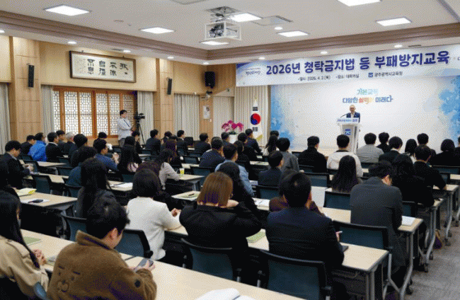 ±¤Áֽñ³À°Ã»Àº 2ÀÏ º»Ã» ´ëȸÀǽǿ¡¼ °íÀ§ °øÁ÷ÀÚ¸¦ Æ÷ÇÔÇØ ¸ðµç Á÷¿øÀ» ´ë»óÀ¸·Î ¡®2026³â ûʱÝÁö¹ý µî ºÎÆÐ¹æÁö±³À°¡¯À» ½Ç½ÃÇß´Ù.