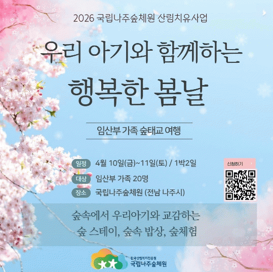 »ê¸²Ã» Çѱ¹»ê¸²º¹ÁöÁøÈï¿ø(¿øÀå Á÷¹«´ëÇà Ȳ¼ºÅÂ) ±¹¸³³ªÁÖ½£Ã¼¿øÀº µû¶æÇÑ º½³¯À» ¸Â¾Æ ÀÓ»êºÎ °¡Á·À» ´ë»óÀ¸·Î ½£Å±³ ¿©Çà ¡®¿ì¸® ¾Æ±â¿Í ÇÔ²²ÇÏ´Â ÇູÇÑ º½³¯¡¯À» ¿î¿µÇÑ´Ù°í ¹àÇû´Ù.