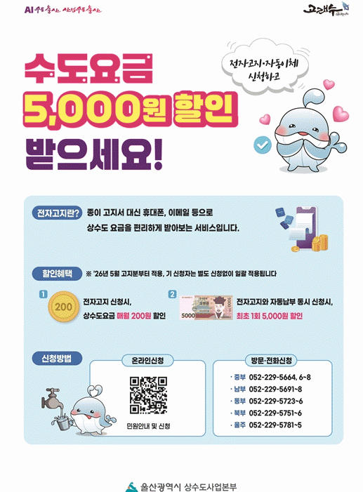 ¿ï»ê½Ã »ó¼öµµ»ç¾÷º»ºÎ ¡°¼öµµ¿ä±Ý 5,000¿ø ÇÒÀÎ ¹ÞÀ¸¼¼¿ä¡±