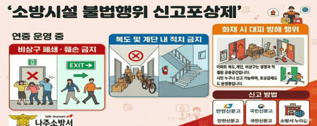 ¼Ò¹æ½Ã¼³ ºÒ¹ýÇàÀ§ ½Å°íÆ÷»óÁ¦´Â ºñ»ó±¸ Æó¼â µî ¼Ò¹æ½Ã¼³¿¡ °¡ÇØÁö´Â ºÒ¹ýÇàÀ§¸¦ ½Å°íÇÏ´Â °æ¿ì ½Å°íÀÚ¿¡°Ô °ü·Ã ±ÔÁ¤¿¡ µû¶ó Æ÷»ó±ÝÀÌ Áö±ÞµÈ´Ù.