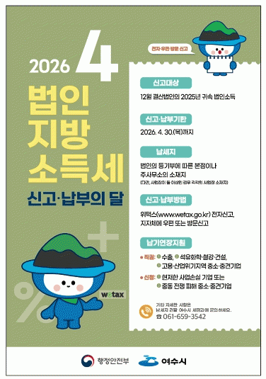 ¿©¼ö½Ã´Â 4¿ù ÇÑ ´Þ°£ ¡®2025³â ±Í¼Ó ¹ýÀÎÁö¹æ¼Òµæ¼¼¿¡ ´ëÇÑ ÁýÁß ½Å°í¡¤³³ºÎ ±â°£¡¯À» ¿î¿µÇÑ´Ù.