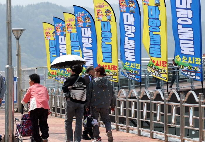 Áö³ 11ÀÏ ¸¶·®Ç× Áß¹æÆÄÁ¦ ÀÏ¿ø(°Áø±º ¸¶·®¸é ¹ÌÇ×·Î 152)¿¡¼ °³ÀåÇÑ ¡®2026³â ¸¶·®³îÅä¼ö»ê½ÃÀ塯Àº ù³¯ºÎÅÍ °ü±¤°´µéÀÇ ¹ß±æÀÌ À̾îÁö¸ç 5,100¿© ¸íÀÇ °ü±¤°´ÀÌ Çà»çÀåÀ» ã¾Æ ¼øÁ¶·Î¿î Ãâ¹ßÀ» º¸¿´´Ù.