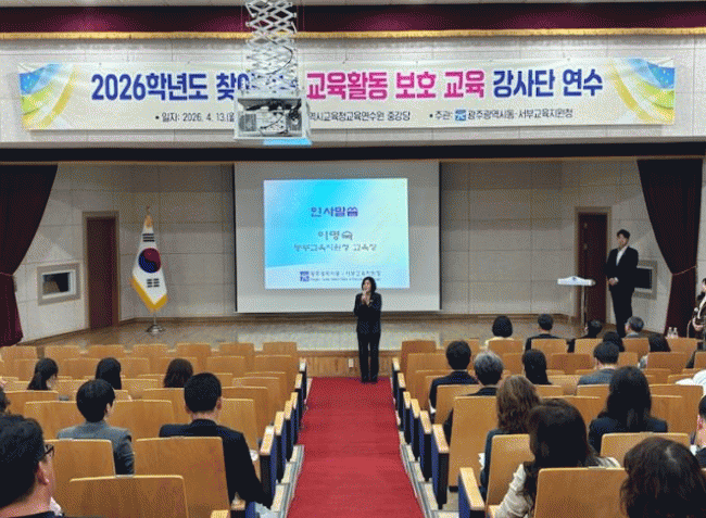 À̸í¼÷ ±¤ÁÖµ¿ºÎ±³À°Áö¿øÃ» ±³À°ÀåÀÌ 13ÀÏ ±¤Áֽñ³À°Ã»±³À°¿¬¼ö¿ø¿¡¼ ¿¸° ¡®2026Çг⵵ ã¾Æ°¡´Â ±³À°È°µ¿ º¸È£ ±³À° °»ç´Ü ¿¬¼ö¡¯¿¡¼ Àλ縻À» Çϰí ÀÖ´Ù.