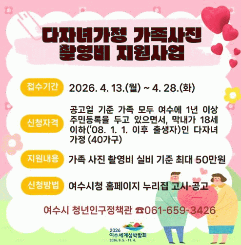 ¿©¼ö½Ã, ´ÙÀÚ³à °¡Á¤ °¡Á·»çÁø ÃÔ¿µºñ Áö¿ø¡¦ÃÖ´ë 50¸¸ ¿ø
