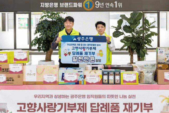 ±¤ÁÖÀºÇàÀº 15ÀÏ, Á¤Àϼ± ±¤ÁÖÀºÇàÀåÀ» ºñ·ÔÇÑ ÀÓÁ÷¿øµéÀÌ °íÇâ»ç¶û±âºÎÁ¦¿¡ ÀÚ¹ßÀûÀ¸·Î Âü¿©Çϰí, ±âºÎ¸¦ ÅëÇØ Á¦°ø¹ÞÀº ´ä·ÊǰÀ» ´Ù½Ã Áö¿ª»çȸ¿¡ ȯ¿øÇÏ´Â ¡®°íÇâ»ç¶û±âºÎÁ¦ ´ä·Êǰ Àç±âºÎ¡¯ Çà»ç¸¦ ½Ç½ÃÇß´Ù°í ¹àÇû´Ù.