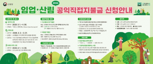 ÀÚ¼¼ÇÑ »çÇ×Àº »êÁö ¼ÒÀçÁö ½Ã±º »ê¸²ºÎ¼³ª À¾¸éµ¿ ÇàÁ¤º¹Áö¼¾ÅÍ, »ê¸²Ã» ÀÓ¾÷Á÷ºÒ±Ý »ó´ã¼¾Å͸¦ ÅëÇØ È®ÀÎÇÒ ¼ö ÀÖ´Ù.