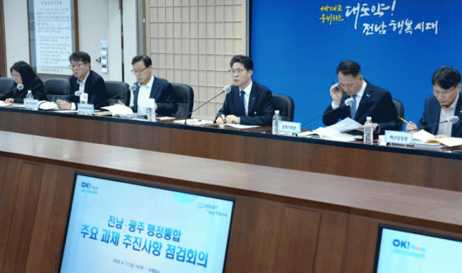 Àü¶ó³²µµ´Â 17ÀÏ µµÃ» ¼ÀçÇʽǿ¡¼ Àü³²¡¤±¤ÁÖ ÇàÁ¤ÅëÇÕ ÁÖ¿ä °úÁ¦ ÃßÁø»óÇ× Á¡°ËȸÀǸ¦ ¿¾î ¿À´Â 7¿ù 1ÀÏ Ãâ¹üÇÏ´Â Àü³²±¤ÁÖÅëÇÕÆ¯º°½ÃÀÇ ¼º°øÀû ź»ý¿¡ ÃÑ·ÂÀ» ±â¿ïÀ̱â·Î Çß´Ù.