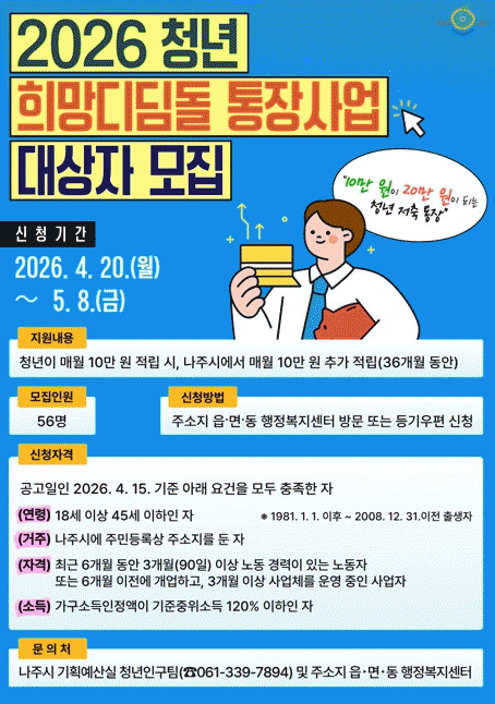³ªÁֽô 2026³â û³â Èñ¸Áµðµõµ¹ ÅëÀå»ç¾÷ ½Å±Ô Âü¿©ÀÚ 56¸íÀ» ¿À´Â 5¿ù 8ÀϱîÁö ¸ðÁýÇÑ´Ù°í 17ÀÏ ¹àÇû´Ù.