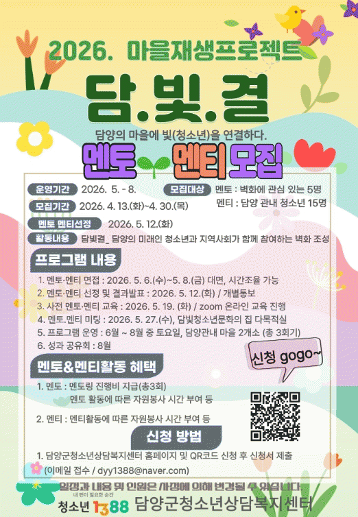 ´ã¾ç±ºÃ»¼Ò³â»ó´ãº¹Áö¼¾ÅͰ¡ Áö¿ª û¼Ò³âÀÌ Á÷Á¢ Âü¿©ÇØ ¸¶À» ȯ°æÀ» °³¼±ÇÏ°í °øµ¿Ã¼ ÀǽÄÀ» ȸº¹ÇÏ´Â ¡®2026³â ¸¶À»Àç»ý»ç¾÷ ´ã¡¤ºû¡¤°á¡¯ÀÇ ¸àÅä¿Í ¸àƼ¸¦ ¿À´Â 30ÀϱîÁö ¸ðÁýÇÑ´Ù.