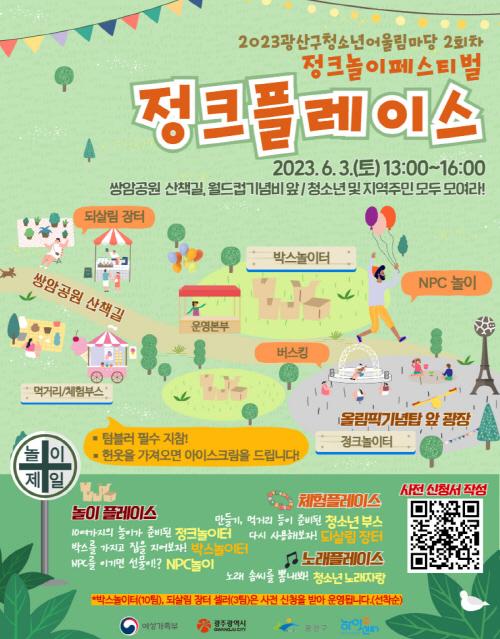 [ÄÚ¸®¾Æ¹®È½ºÆ÷Ã÷Àú³Î] ±¤»ê±¸Ã»¼Ò³â¼ö·Ã°ü(ÀÌ¿î±â °üÀå)Àº µ¹¾Æ¿À´Â 2023³â 6¿ù 3ÀÏ Ã·´Ü ½Ö¾Ï°ø¿ø »êÃ¥±æ ¹× ¿Ã¸²Çȱâ³äºñ ¾Õ ±¤Àå¿¡¼ 2023±¤»ê±¸Ã»¼Ò³â¾î¿ï¸²¸¶´ç 2ȸÂ÷ Á¤Å© ³îÀÌ ÃàÁ¦ ¡®Á¤Å©Ç÷¹À̽º¡¯ °³ÃÖÇÑ´Ù°í ¹àÇû´Ù.
